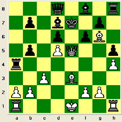 It’s Qxe5+, now blacks got two responses fxe5 or dxe5. Now this is looking interesting, the king is still stalemated and either capture opens the diagonal for our e3-bishop to give check and in this case Fred Wilson is right. Check it might be mate via Bc5# or Bg5#.