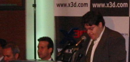 excerpts : It’s a great honor to represent this amazing program on what is an historic day. X3d fritz is truly a child of the 21st century. Leaders of several cutting edge technologies. From x3d exhilarating extreme 3d to photo realistic graphic design. the fastest hardware available today. and of course the strongest chess engine every programmed. X3d technology is truly amazing … with uses in chess, fashion, gaming movies, medicine and television. Its hard to believe that we would see a day where a major chess event would take place in virtual reality, but that day is today. Mr. Kasparov will take on this impressive program, not on a real board where the human makes moves for the computer …but in virtual reality wearing x3d glasses looking at a chessboard that floats in mid air. For the first time ever in a match of this magnitude x3d fritz is no longer a program just designed to play Garry Kasparov. It’s designed to be a virtual reality chess experience for everyone. Never before has there been an opportunity for consumers to obtain such a program. Now with x3d .com you can purchase X3D Fritz and the extreme capabilities This will be an amazing experience for the tens of millions who watch this event.