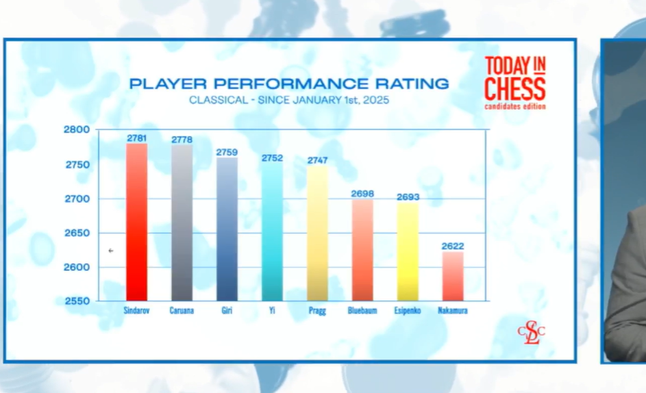 While watching St Louis Chess club broadcast, I observed Sindarov rocking back and forth during the post game 6 interview he is wired... Sindarov has leaped into the top 5 of the Fide rating chart, gaining 25 points during the candidate match play